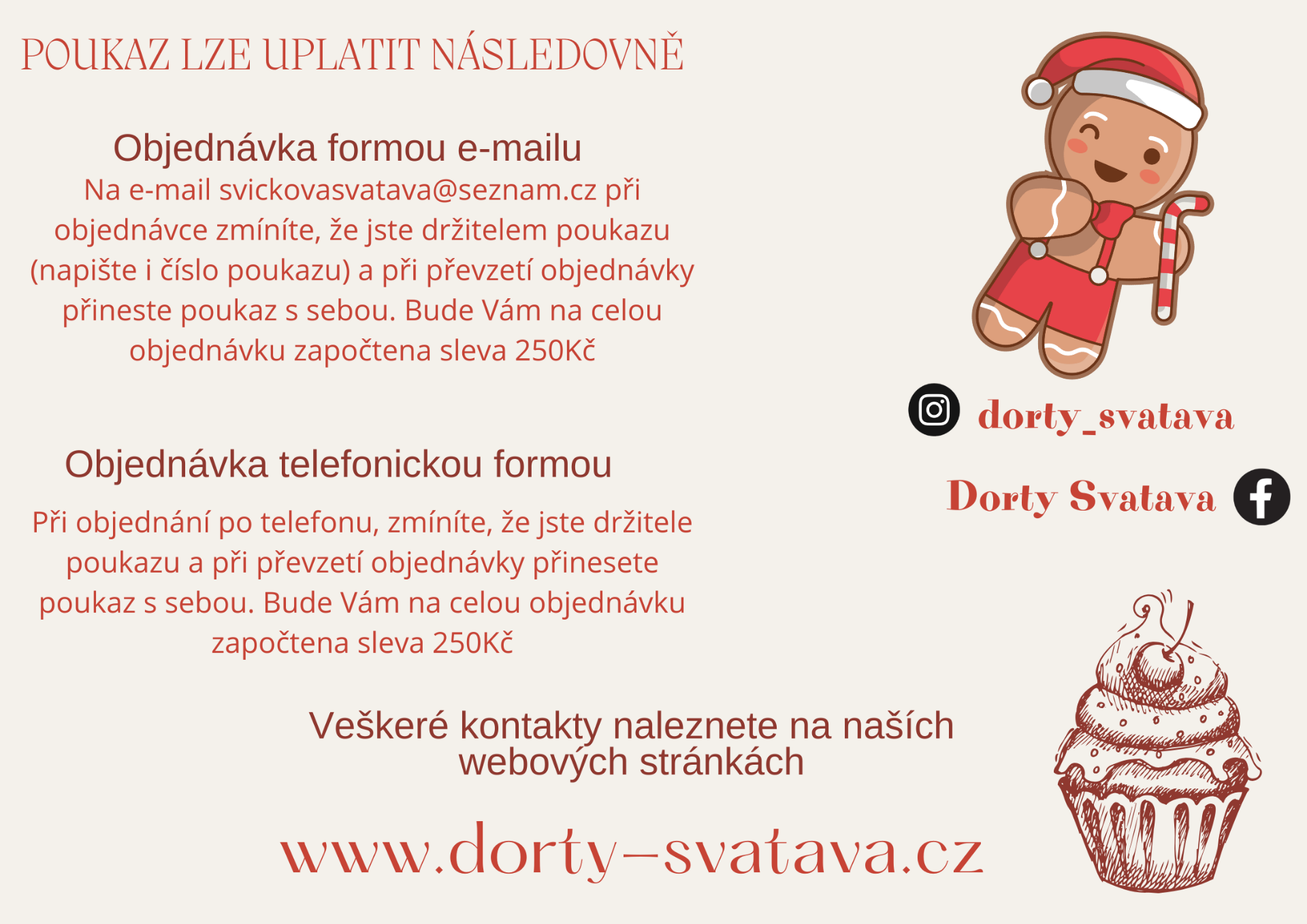 Na e-mail svickovasvatava@seznam.cz při objednávce zmíníte, že jste držitelem poukazu (napište i číslo poukazu) a při převzetí objednávky přineste poukaz s sebou (nebo jej mějte přichystaný v mobilu) . Bude Vám na celou objednávku započtena sleva 1000Kč